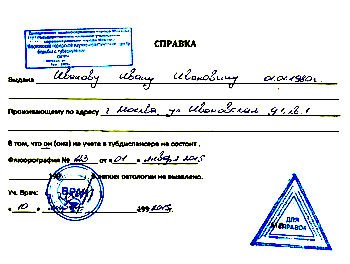Справка из тубдиспансера купить в Москве дешево с доставкой