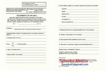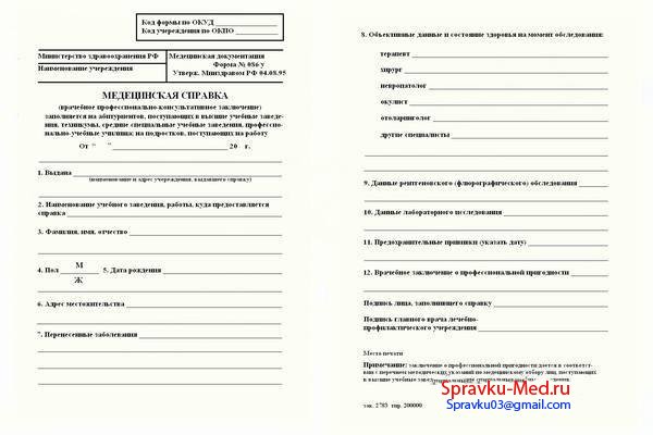 Справка формы 086у: Купить в Москве для поступления на работу учебу