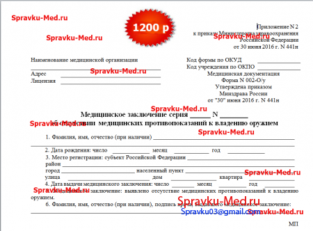 Для покупки оружия понадобится оформить уйму документов, в том числе и справку 002 О/У. Для этого придется посетить психоневрологический и наркологический диспансеры, офтальмолога и терапевта. Это все занимает несколько недель. Для упрощения процедуры проще обратиться к нам в Kypi Spravki за помощью в оформлении.