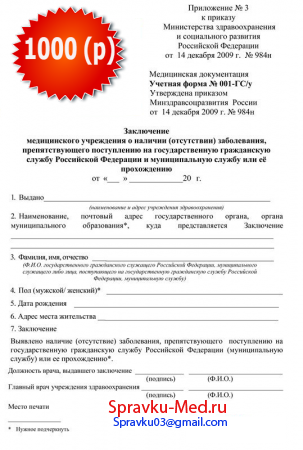 Чтобы иметь представление о документе, который предстоит получить можно заглянуть на официальный сайт Минздрава. Там всегда можно увидеть справку 001 гсу для госслужащихформу и образец заполненного документа.
